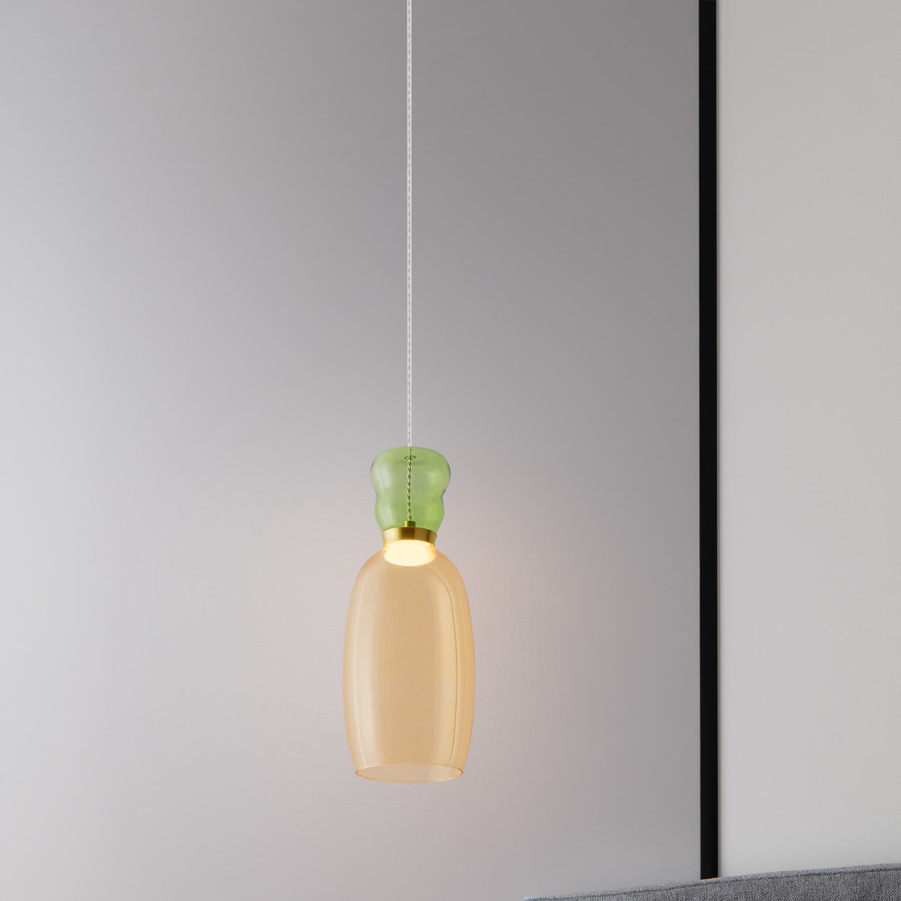Nova Luce Pluma - hanglamp - Ø 15 x 179 cm - 9W LED incl. - goud, glanzend lichtgroen en geel glas