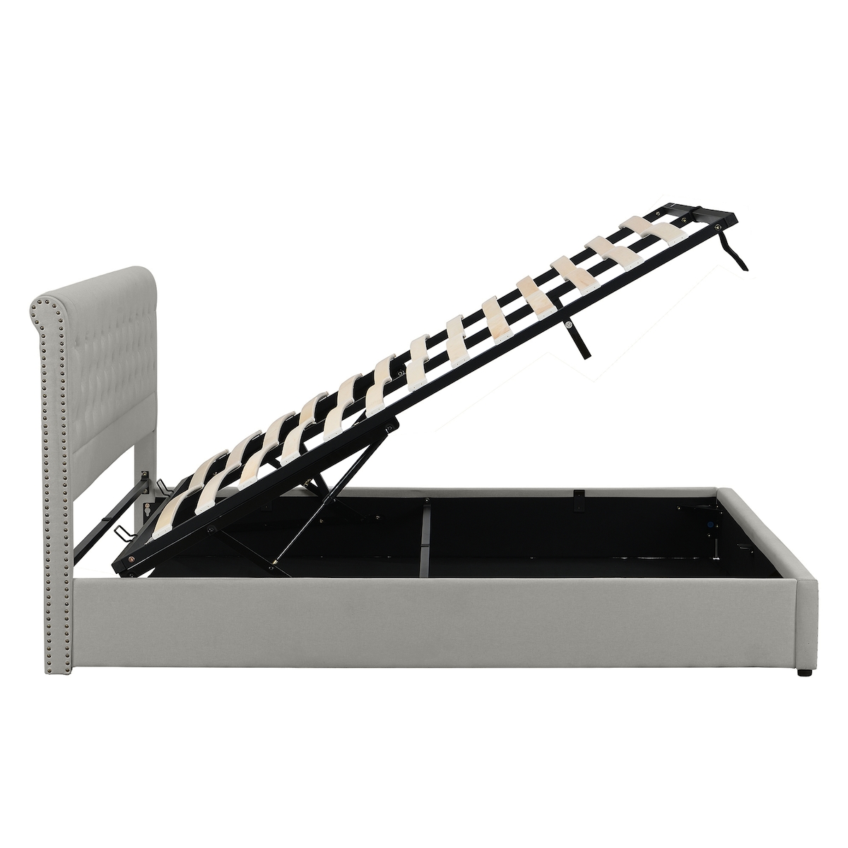 Polsterbett 140x200 cm aus Leinen mit Stauraum und Nietenverzierung – stilvolles und elegantes Design Grau