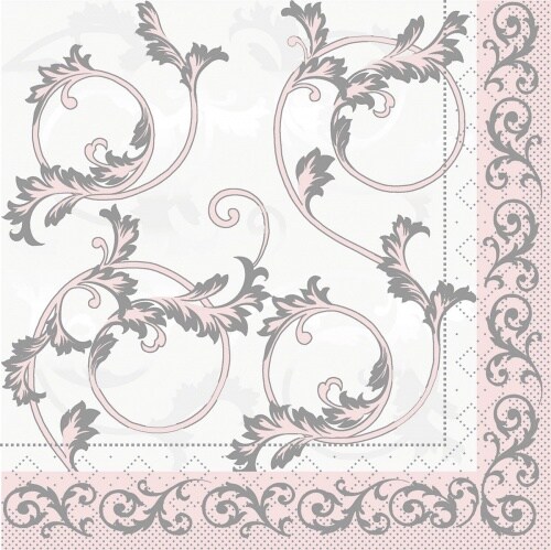 Mank Serviette aus Tissue - Michel in Grau-Rose, 33 x 33 cm, 100 Stück - Ornamente