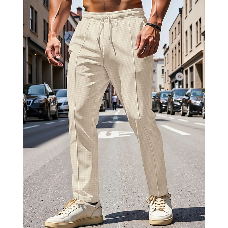 Men's Sweatpants Trousers Pleated Pants Waffle Pants Pocket Elastic Waist Drawstring Plain Comfort Sports Outdoor Daily Fashion Casual Black White Micro-elastic
