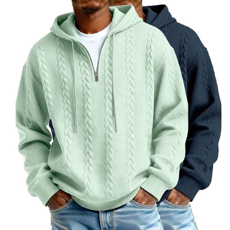 Men's Jacquard Hoodie Quarter Zip Hoodie ApricotGray Light BlueBlack WhiteLight Gray Light GreenNavy Blue Light BluePurple Hooded Plain Textured Casual Daily Sports Outdoor Streetwear Cool