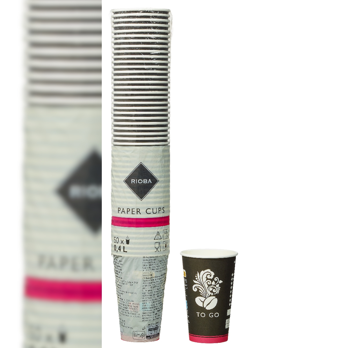 RIOBA To-Go Becher, Papier, 0.4 L, Ø 9 x 12.4 cm, schwarz, 12 x 50 Stück