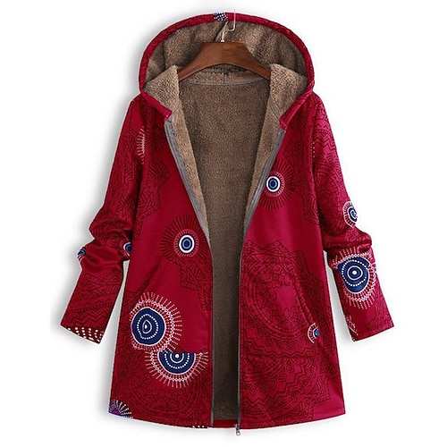 Giacca Sherpa Donna Foderata In Pile Giacca Casual Confortevole Traspirante Stampa Casual Geometrica Vacanza Strada Casual Abbigliamento Quotidiano Frontale Regolare Con Cappuccio Maniche Lunghe