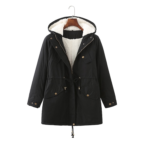 Per donna Giacca imbottita Giacca Sherpa Cappotto in Pelliccia Sintetica Caldo Confortevole Cerniera Tasca Bottoni Casual Semplice Vacanza Abbigliamento quotidiano Uscire Weekend Lungo Con Cappuccio