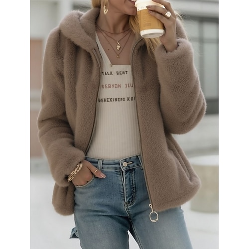 Per donna Cappotto Invernale Giacca in Pile Giacca Sherpa Confortevole Tasca Elegante Carino Pelliccia Tinta unica Scuola All'aperto Vacanza Casa Regolare Con Cappuccio Vestibilità comoda Manica Lunga
