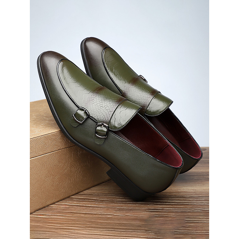 Men's Faux Leather Red Monk Strap Shoes – Elegant Stylish Formal Shoes for Weddings and Special Events