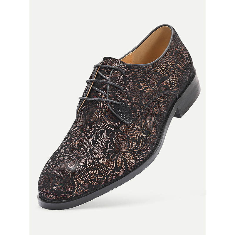 Men's Luxury Leather Wedding Shoes - Black Floral Embroidered Design, Elegant Formal Shoes for Weddings and Ceremonies
