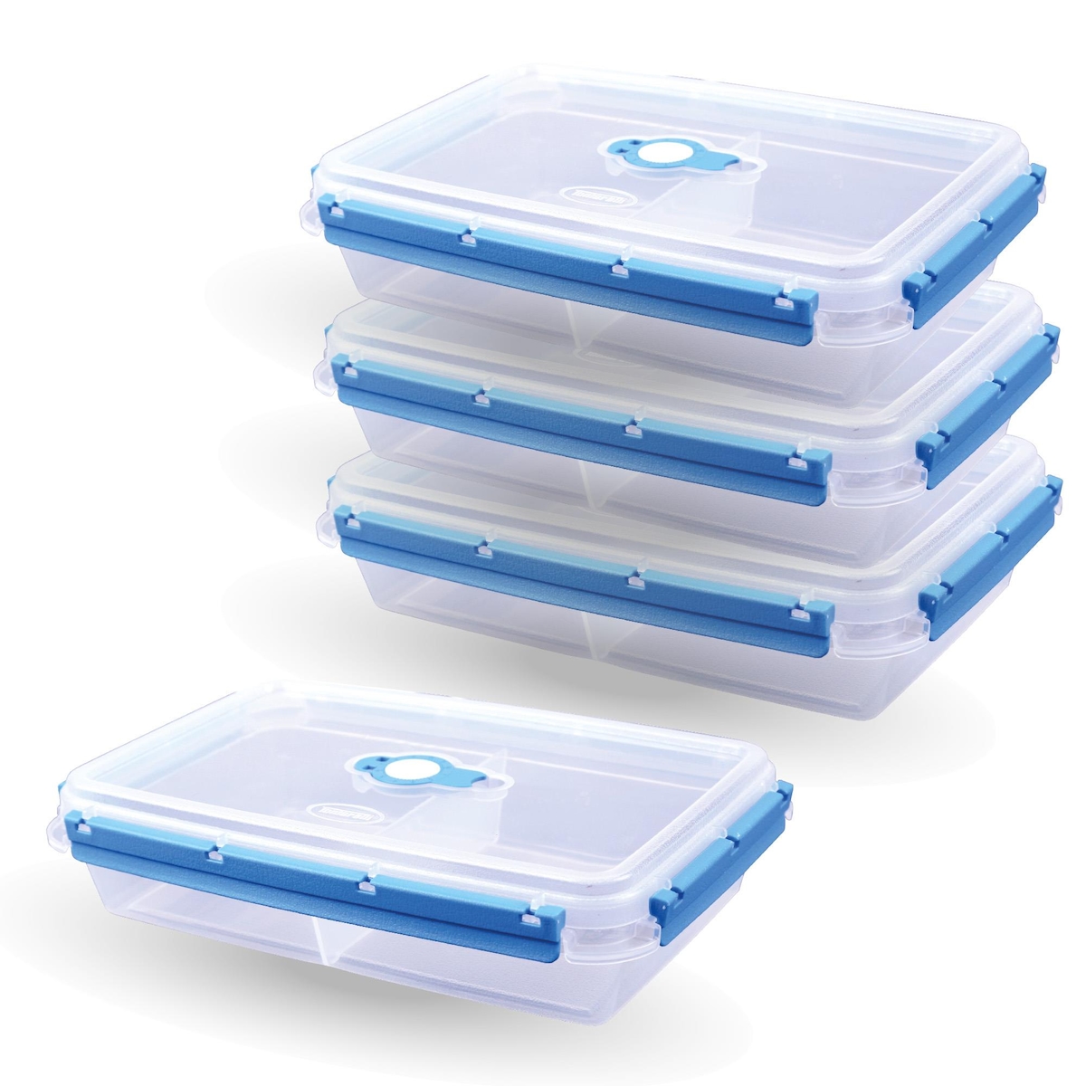 Bestlivings Frischhaltebox 2L - Brotdose im Set Blau mit Trenner - 4er Pack ( 4 Stück )