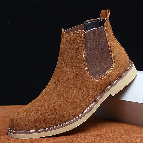 stivaletti chelsea da uomo in pelle scamosciata marrone: design slip-on elegante, comodi da indossare tutti i giorni, ideali per occasioni casual e smart casual