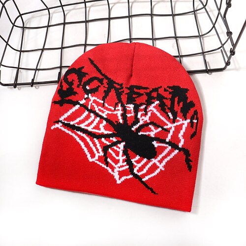 Herren Unisex Beanie Mütze Wintermützen Beanies Schädelkappe Strickmütze Schwarz Gelb Acrylfasern Jacquard Gestrickt Gemütlich Halloween Alltagskleidung Festival Spinne Buchstabe Spinnennetz Warm
