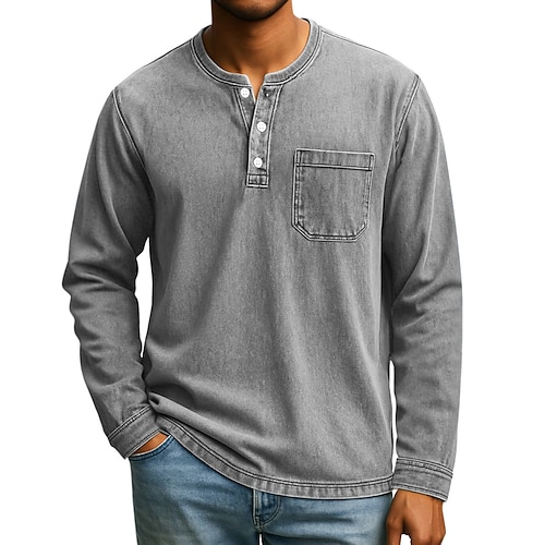 Herren Henley Hemd T-Shirt Langarm Vintage Einheitliche Farbe Retro Vintage Lässig Vintage-Stil Henley Lässig Frühling Herbst Ganzjahres Schwarz Rosa Grau Henley T-Shirt