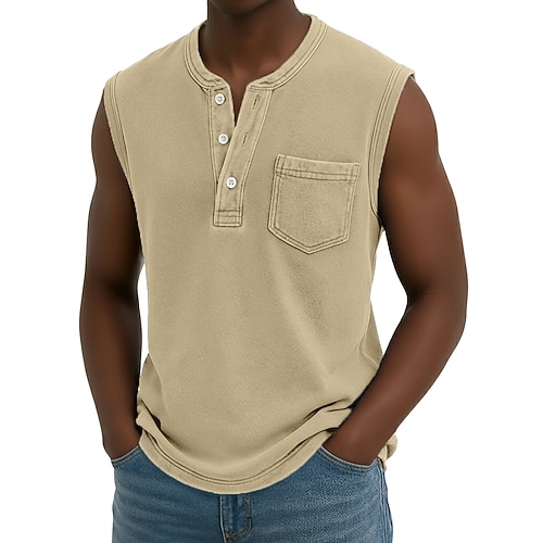 Herren Tank Top Weste Ärmelloses Shirt Ärmellos Henley Sommer Frühling Einfach Mode Designer Basic Tasche Vintage-Stil Knöpfe Urlaub Straße Alltagstauglich Schwarz Hellgrün Rosa Top T-Shirt für Herren