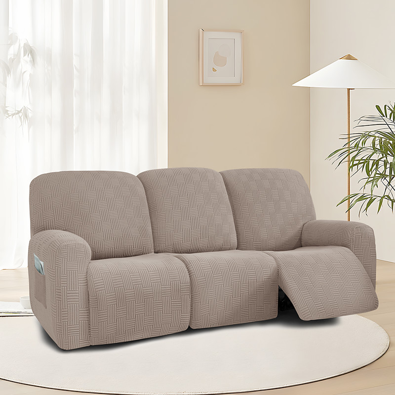 3-Seater Reclining Sofa Cover with 5x5 Grid Stitch Design - Three-Person Lounge Couch Cover with Low Back and Modern Style