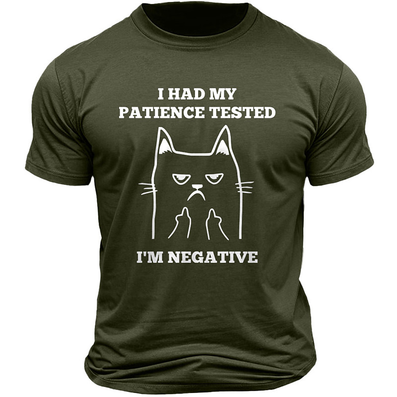 Men's Funny T-Shirt: Grumpy Cat 'Patience Tested, I'm Negative' Sarcastic Graphic Tee