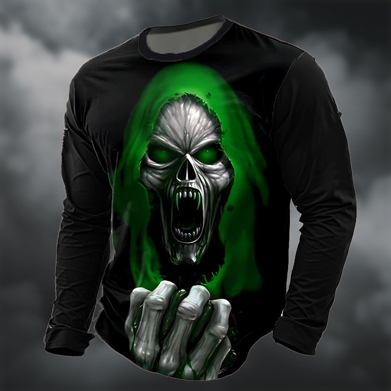 Halloween Men's Grim Reaper 3D T Shirt Long Sleeve T shirt 3D Print Crew Neck Shirt Fashion Exaggerated Street Casual Daily Red Green Summer Spring Fall Clothing Apparel S M L XL XXL XXXL