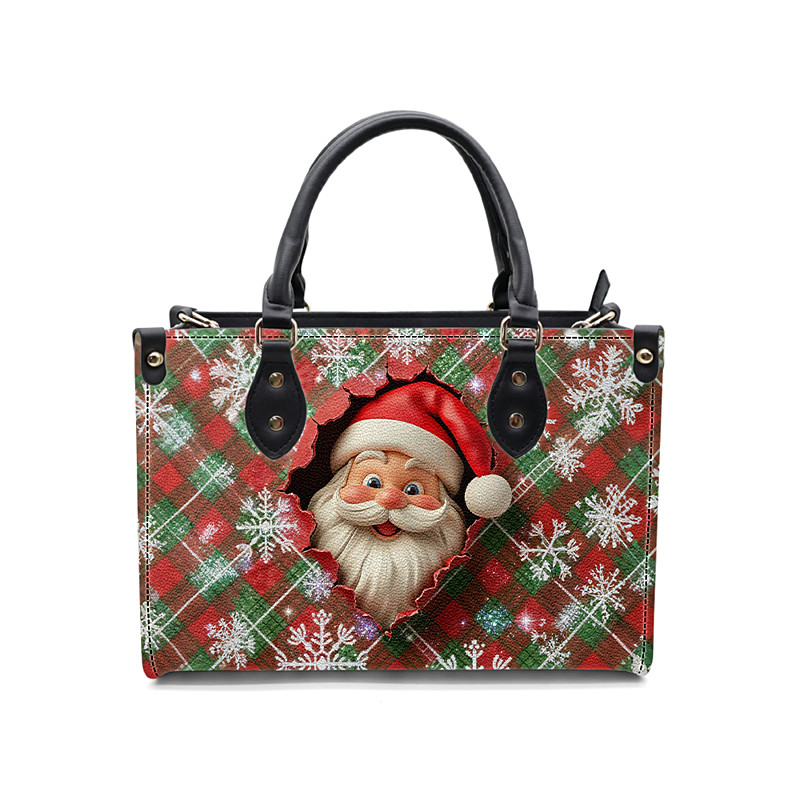 Women's Christmas Tote Bag - Faux Leather, Santa and Snowman Design, Holiday Gift Bag for Women, Festive Season Handbag for Christmas, Perfect for Parties and Winter Outings