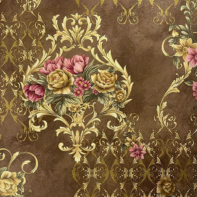 1 Roll 3D European Damask Non Self-adhesive Wallpaper Embossed Bedroom Headboard Living Room Background Wall Decoration Waterproof Wallpaper 950x53cm/374x20.87inch