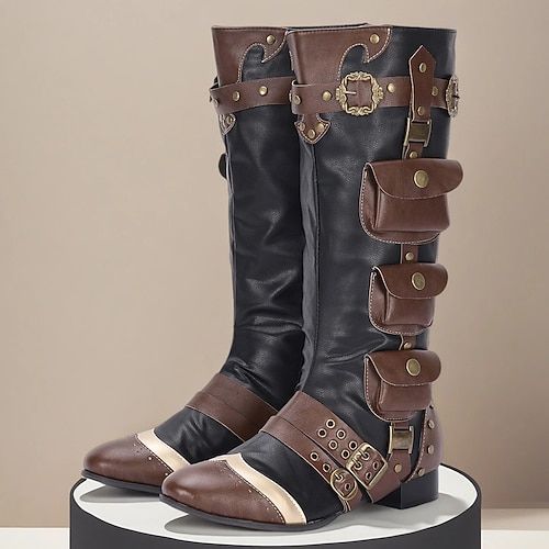 stivali da uomo in stile medievale neri e marroni – design classico con fibbia e cinturino, ideali per rievocazioni storiche, cosplay ed eventi a tema