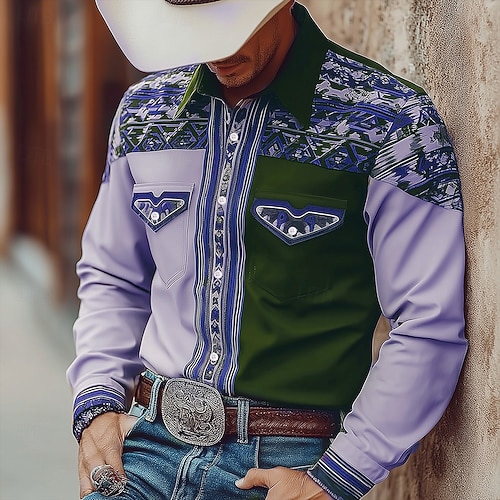 Per uomo Azteco Cultura indiana Camicia Camicia Western Camicia da cowboy Manica Lunga Vintage Stile Western Tribale All'aperto Quotidiano Abbigliamento da lavoro Autunno Inverno Collo ripiegato