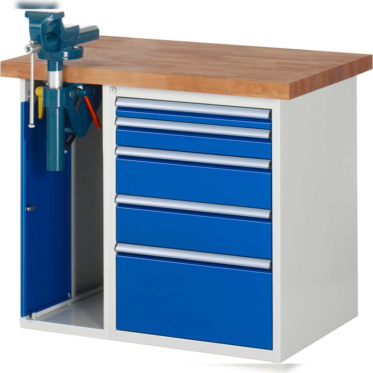 PROREGAL Werkbank Serie 7000 - Modell 7511 | HxBxT 84x100x70cm | 5x Schublade + 1x Schrank | Schubladenmaße 1x60 + 1x90 + 2x150 + 1x270mm