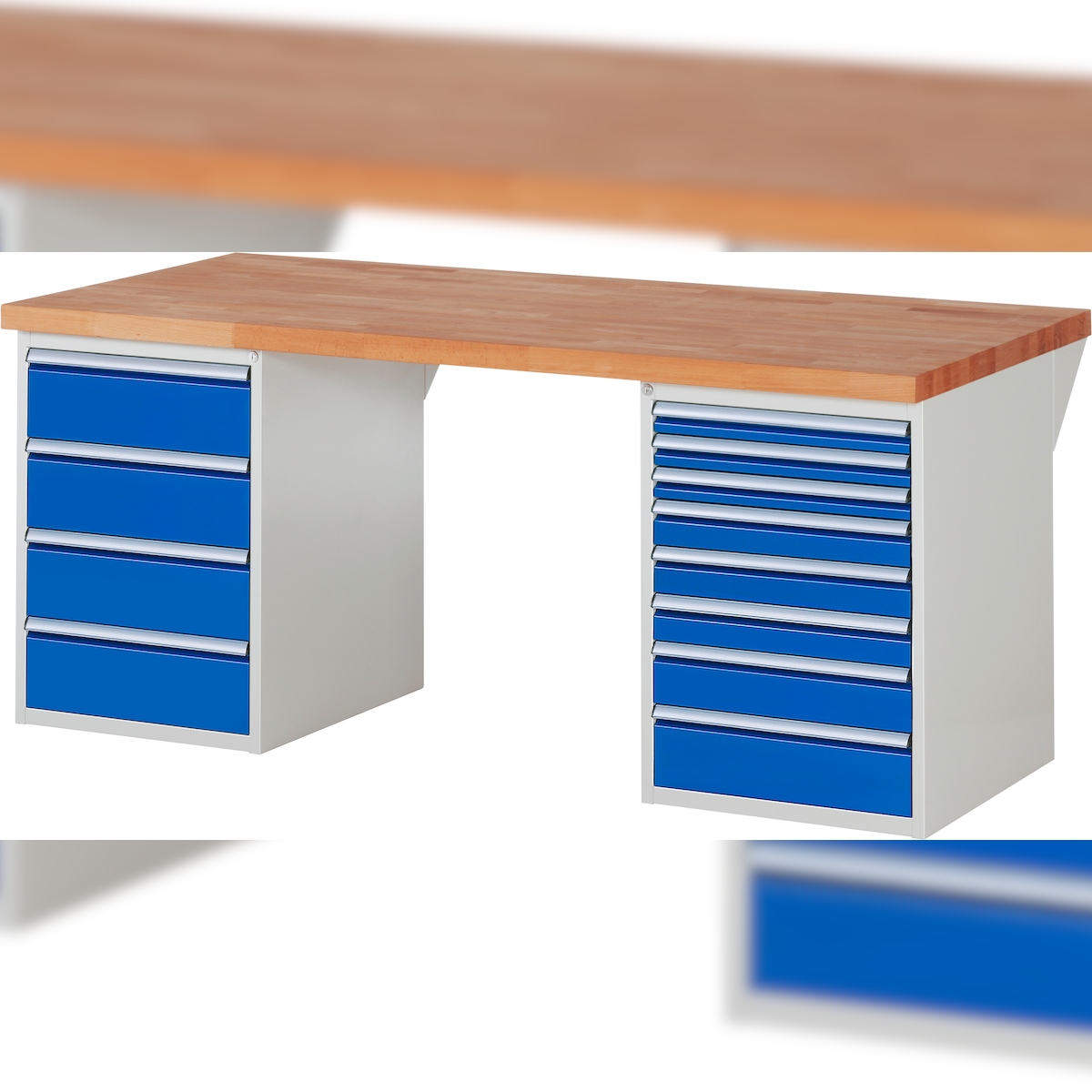 PROREGAL Werkbank Serie 7000 - Modell 7822 | HxBxT 84x200x90cm | 12x Schublade | Schubladenmaße 3x60 + 3x90 + 1x120 + 4x180mm