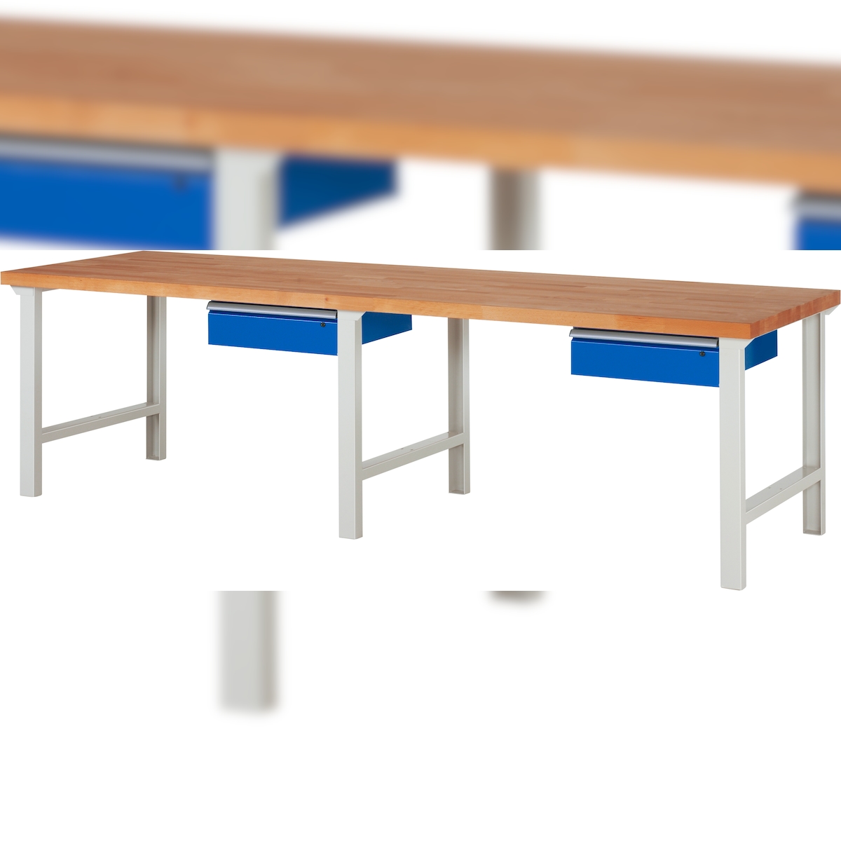 PROREGAL Werkbank Serie 7000 - Modell 7001 | HxBxT 84x300x90cm | 2x Schublade | Schubladenmaße 2x150mm | Lichtgrau | Arbeitstisch Werktisch