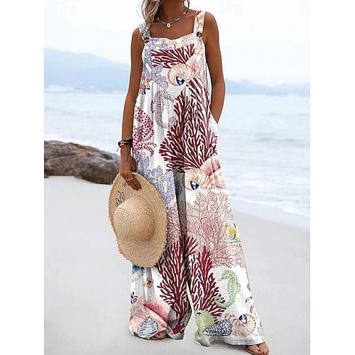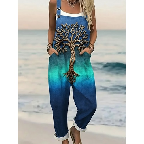 Per donna Salopette Attivo Grafico Senza Maniche Senza maniche Gamba larga Tasca Bottoni Quotidiano Spiaggia Vestibilità comoda Blu Rosa Verde Estate