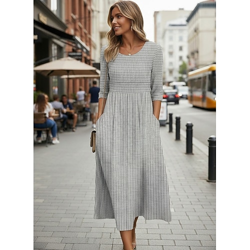 Per donna Abito Midi Vestito Casual Abito a trapezio Elegante Casual Vacanza Quotidiano Vestibilità comoda A righe Manica Corta Girocollo Grigio Azzurro Estate Primavera
