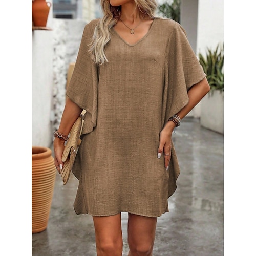 Per donna Mini Abito Abito a Tubino Casual Quotidiano Vestibilità comoda Semplice Mezza Manica Scollo a V Blu Nero Vino Rosso Estate Primavera Autunno