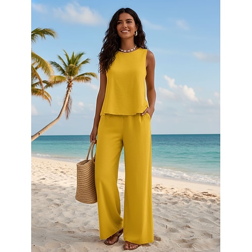 Per donna Set di Pantaloni Bolero Top Senza Maniche Girocollo Tinta unica Stampato Moda Streetwear Casuale Quotidiano All'aperto Giallo Arancione Cachi Estate Vestibilità comoda