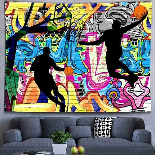 Arazzo murale con graffiti di basket MVP, numero 23, maglia da schiacciata, atleta, street art, sfondo per camera da letto di ragazzi, decorazione per camera da letto di adolescenti, tema hip hop