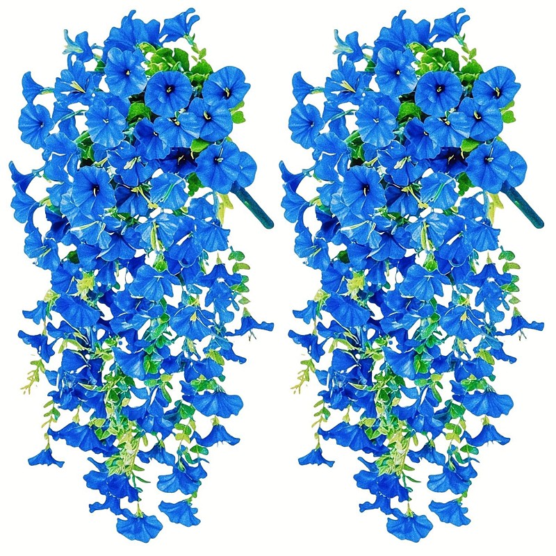 2 Pack Artificial Hanging Flowers Faux Morning Glory with Eucalyptus Leaves UV Resistant Realistic Plants for Home Garden Decor Multi-Color No Container All-Season Spring Perfect for Thanksgiving