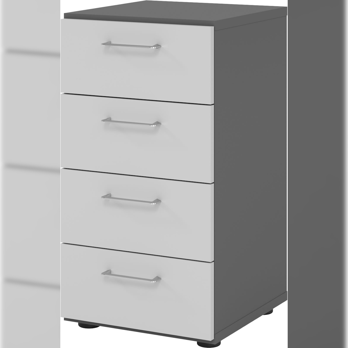bümö smart Schubladenschrank, Büroschrank in Graphit/Grau mit 4 Schüben - Bürocontainer aus Holz, Container mit Metallgriffen & Soft-Stop Schubladen