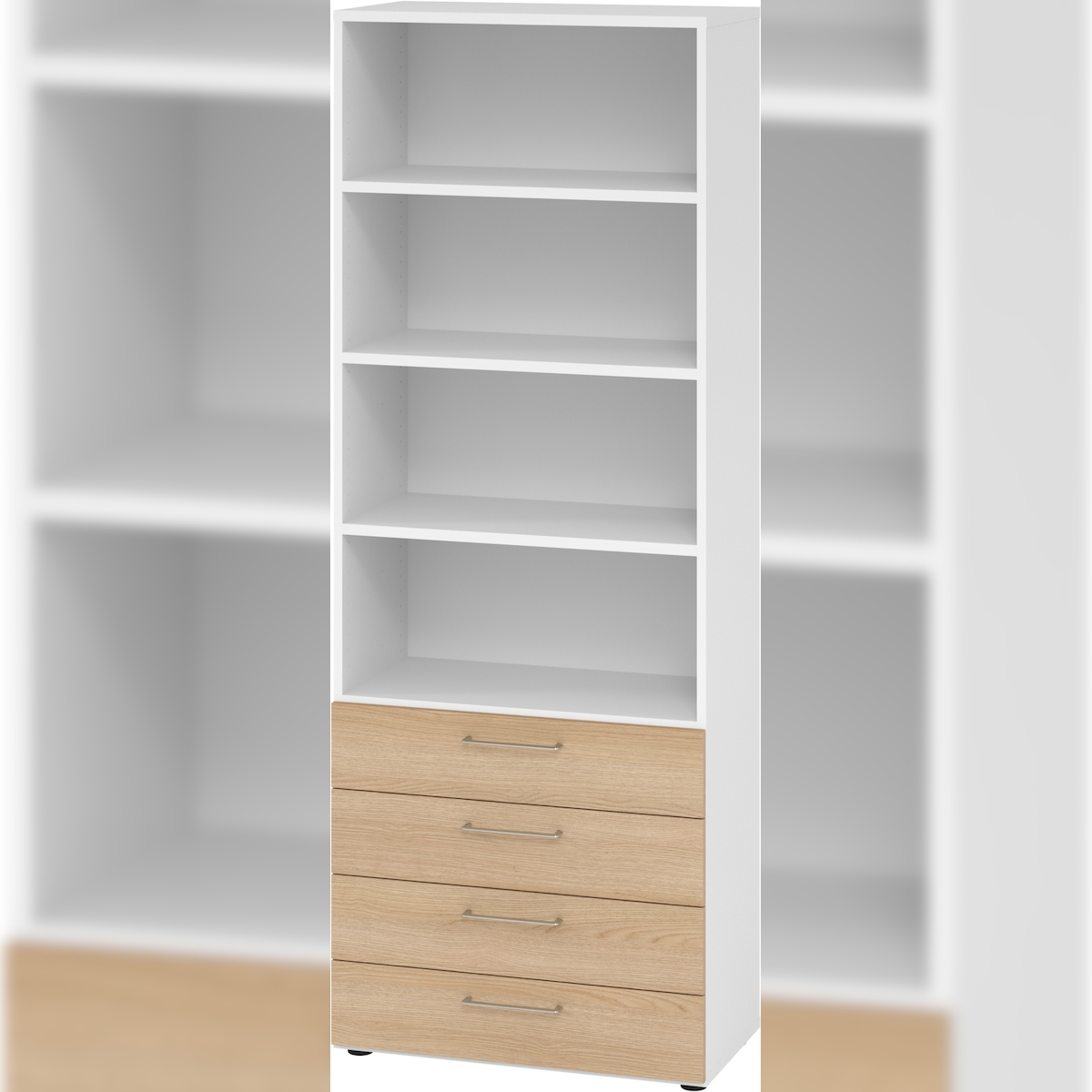bümö smart Schubladenschrank, Büroschrank 80cm breit in Weiß/Eiche mit 4 Schüben & 4 Regalfächern - Bürocontainer aus Holz, Container mit
