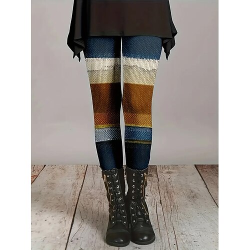 Per donna Pantaloni Leggings Leggings comodi Streetwear Casual Lunghezza intera Vita Alta Blocco di colori Elastico in vita Stampato Traspirabilità Confortevole Elasticizzato Vacanza Streetwear