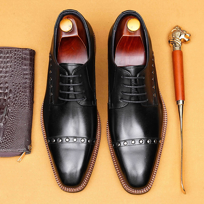 Men's Brown Leather Dress Shoes – Stylish Lace-Up Design with Classic Detailing, Perfect for Weddings, Office Wear and Formal Occasions