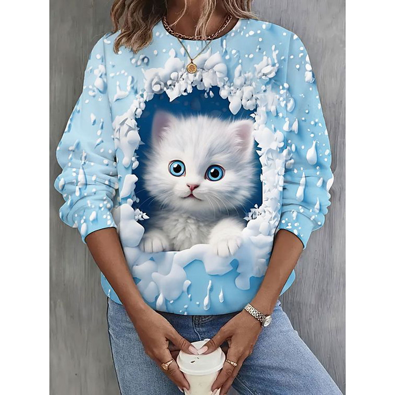 Women's Pullover Sweatshirt Hoodies Graphic Animal Snowman Fashion Casual Long Sleeve Crew Neck Regular Tops Street Dailywear Casual Print White Pink Blue Spring Fall Winter