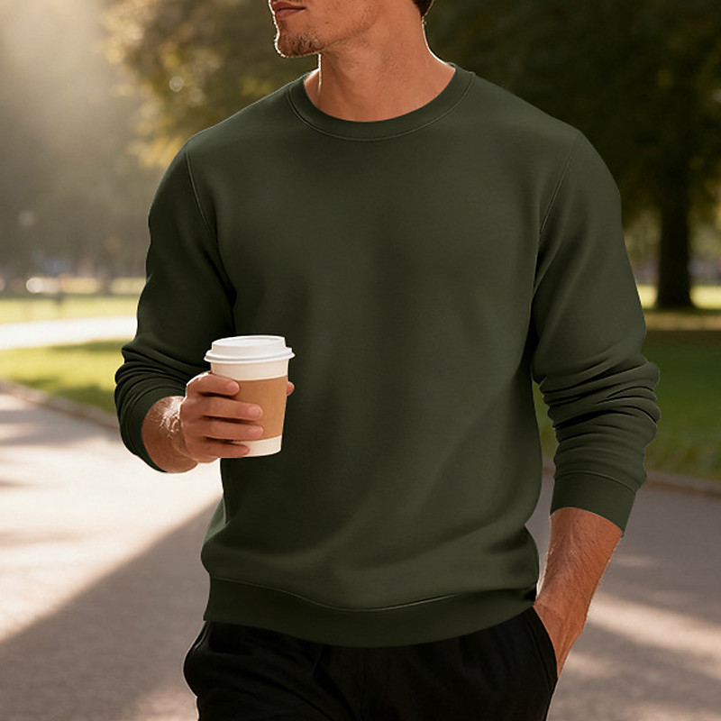 Men's Sweatshirt Fleece Sweatshirt Apricot Black Army Green Red Navy Blue Crew Neck Plain Sports Outdoor Daily Holiday Polyester Streetwear Basic Casual Fall Winter Clothing Apparel Hoodies