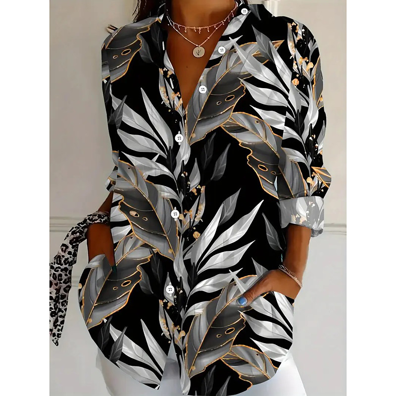 Women's Shirt Blouse Graphic Daily Stylish Retro Vintage Long Sleeve 3/4 Length Sleeve Shirt Collar Long Tops Daily Holiday Going out Buttons Black Red Brown Green Spring Fall Winter Spring, Fall