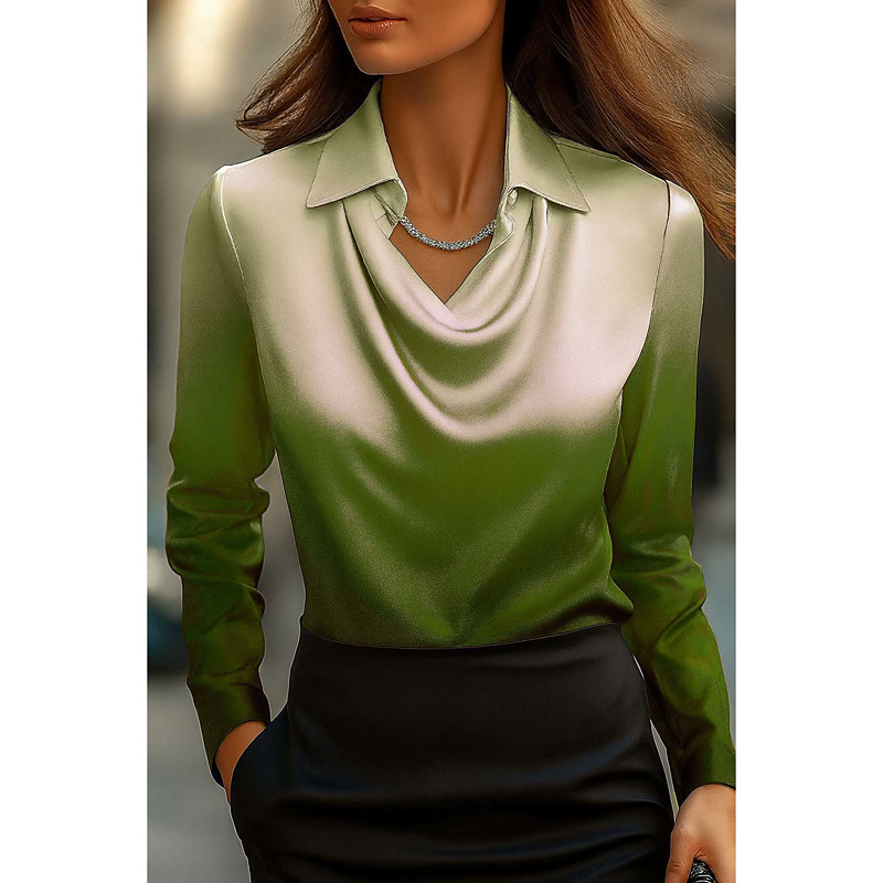 Women's Shirt Ombre Graphic Geometric Elegant Stylish Basic Long Sleeve Cowl Neck Regular Tops Work Party Evening Wear Daily Ruched Draped Grass Green Light Green Green Spring Fall Winter Spring