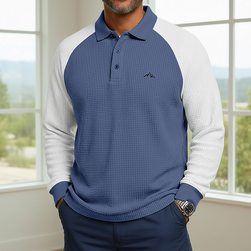 Men's Waffle Polo Shirts Quarter Zip Polo Outdoor Causal Quarter Zip Long Sleeve Fashion Modern Solid Color Color Block Knitted Spring Spring Fall Regular Fit Black Navy Blue Purple Green Gray