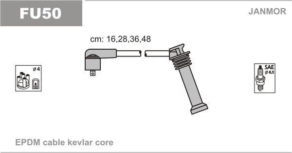 Sytytysjohtosarja Janmor FU50 - ford, mazda - OE L 813-18-140 B, L 813-18-140 C