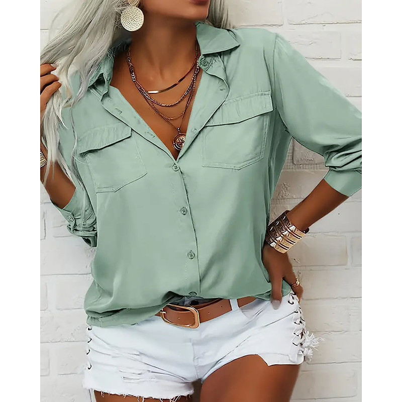 Women's Dressy Tops Solid Color Plain Elegant Ladies Stylish Long Sleeve V Neck Regular Tops Work Daily Going out Pocket Black White Pink Green Khaki Fall Winter