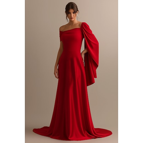 Linea ad A Lunghezza al pavimento Abito da Sera Da principessa Abito formale Elegante Manica 3/4 Senza Spalle Matrimonio Formale Tasca Raso Elasticizzato con Arricciato