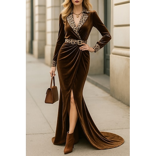 Per donna Da donna Abito da smoking Linea ad A Matrimonio Formale Ospite di nozze Velluto Elegante Vintage Manica Lunga Manica 3/4 plissettata Lunghezza al pavimento Revers dentellati Monopetto