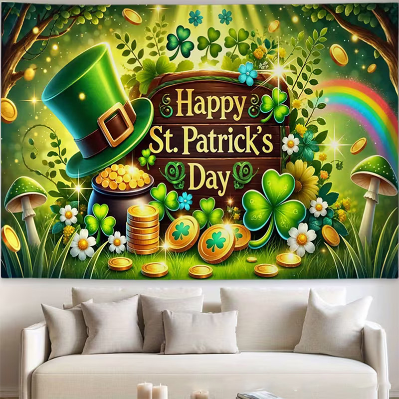 St. Patrick's Day Tapestry Banners Blanket Elf Shamrock Cute Romantic 3D Bedroom Living Room Dorm Teens Room College Dorm Wall Porch Home Decor