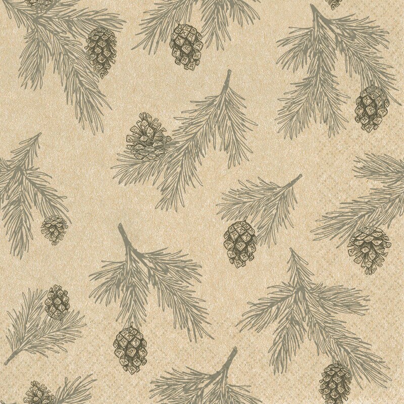 Home Fashion, Pine Cones grey, Lunch-Servietten aufgefaltetes Maß 33 cm x 33 cm, im Viertelfalz, 20 Stück pro Pack