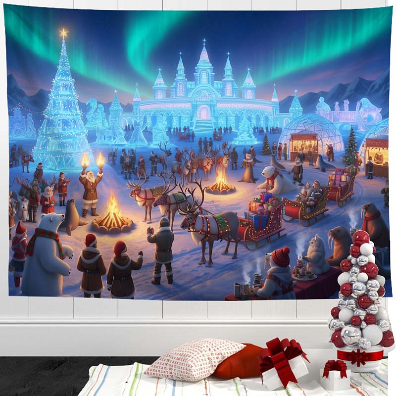 Christmas Northern Lights Garage Door Cover – Festive Holiday Decoration, Aurora Borealis Winter Santa Garage Curtain for Home Exterior