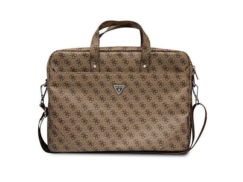 Guess Saffiano 4G kolmio logo tietokonelaukku 16 brązowy