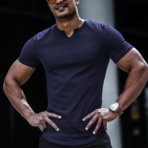 Per uomo Maglietta Manica Corta Scollo a V Estate Semplice Moda Classico Confortevole Scollo a V Streetwear Casuale Sportivo Nero Bianco Blu marino scuro Maglietta Top per Uomo